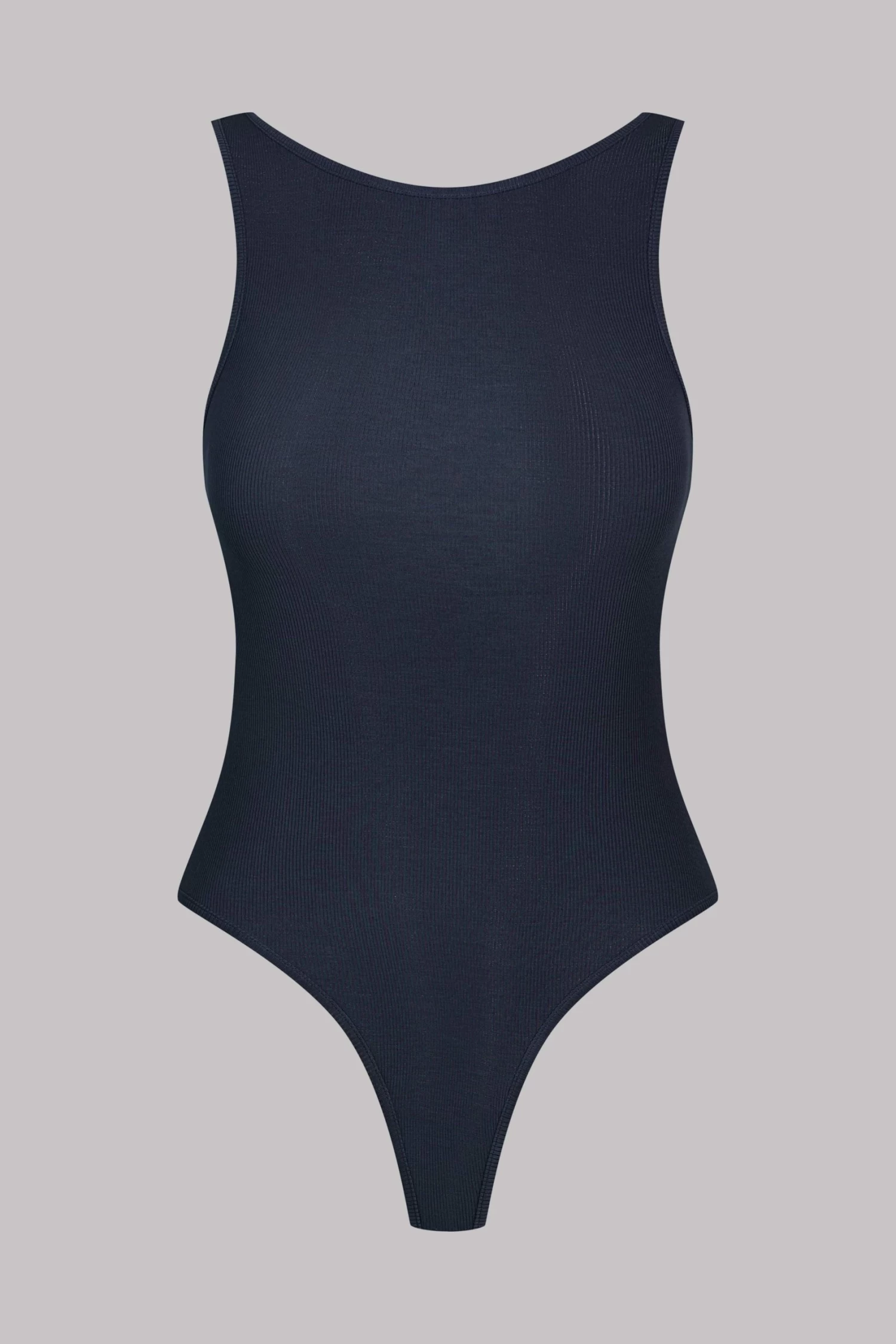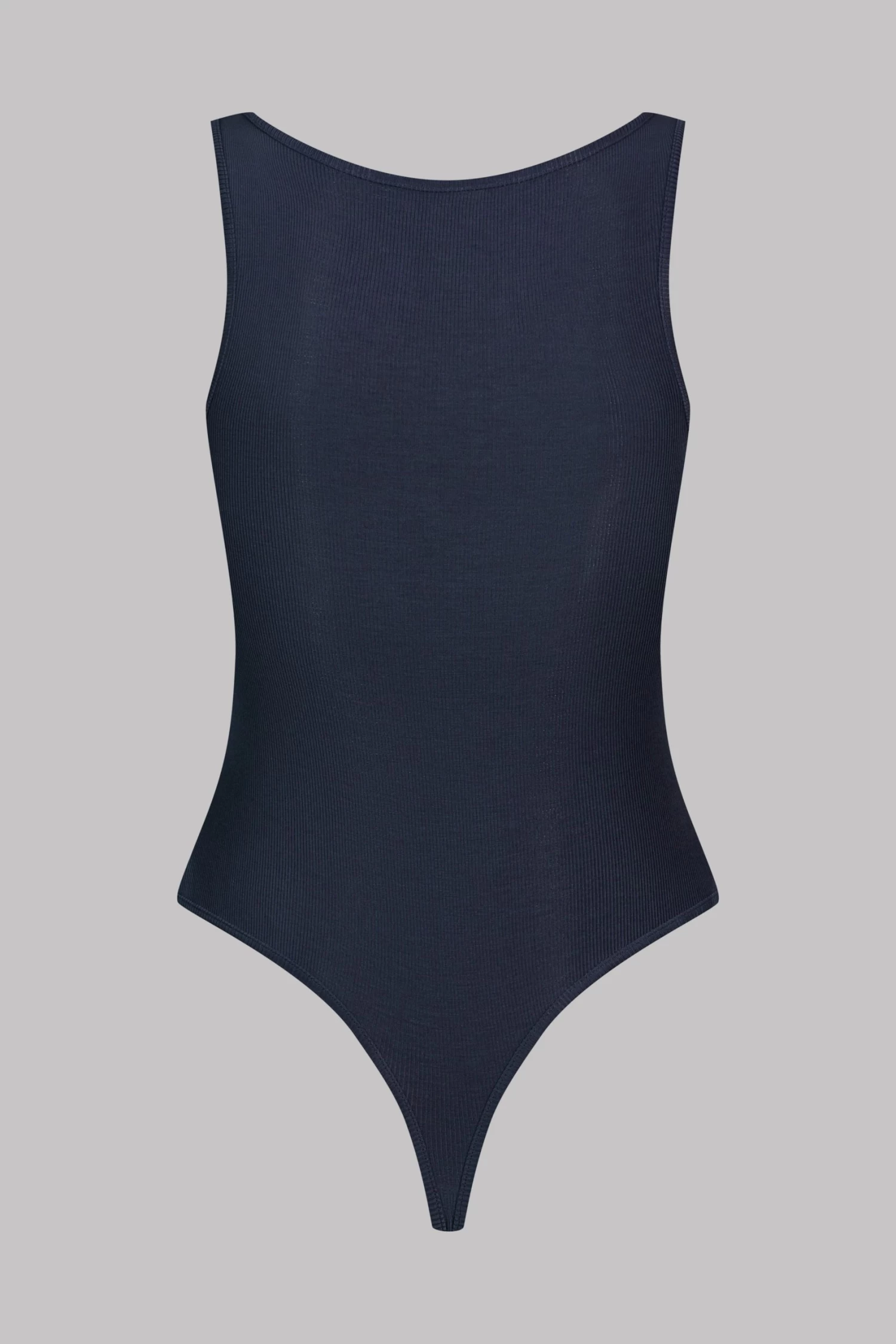 Body string échancré sans manche. Modal côtelé ultra extensible, doux et léger qui s’étire en brillance comme en transparence. Coupe ajustée et épurée, buste et dos pleins. Ouverture par agrafes réglables à l’entrejambe.