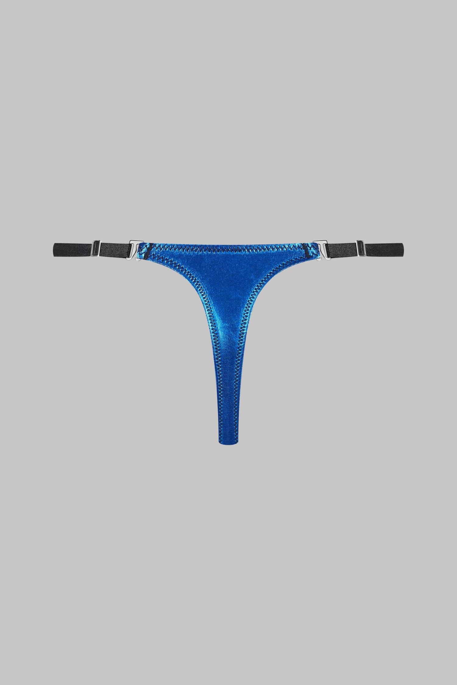 Mini string en microfibre opaque avec application d’un foil métallisé.