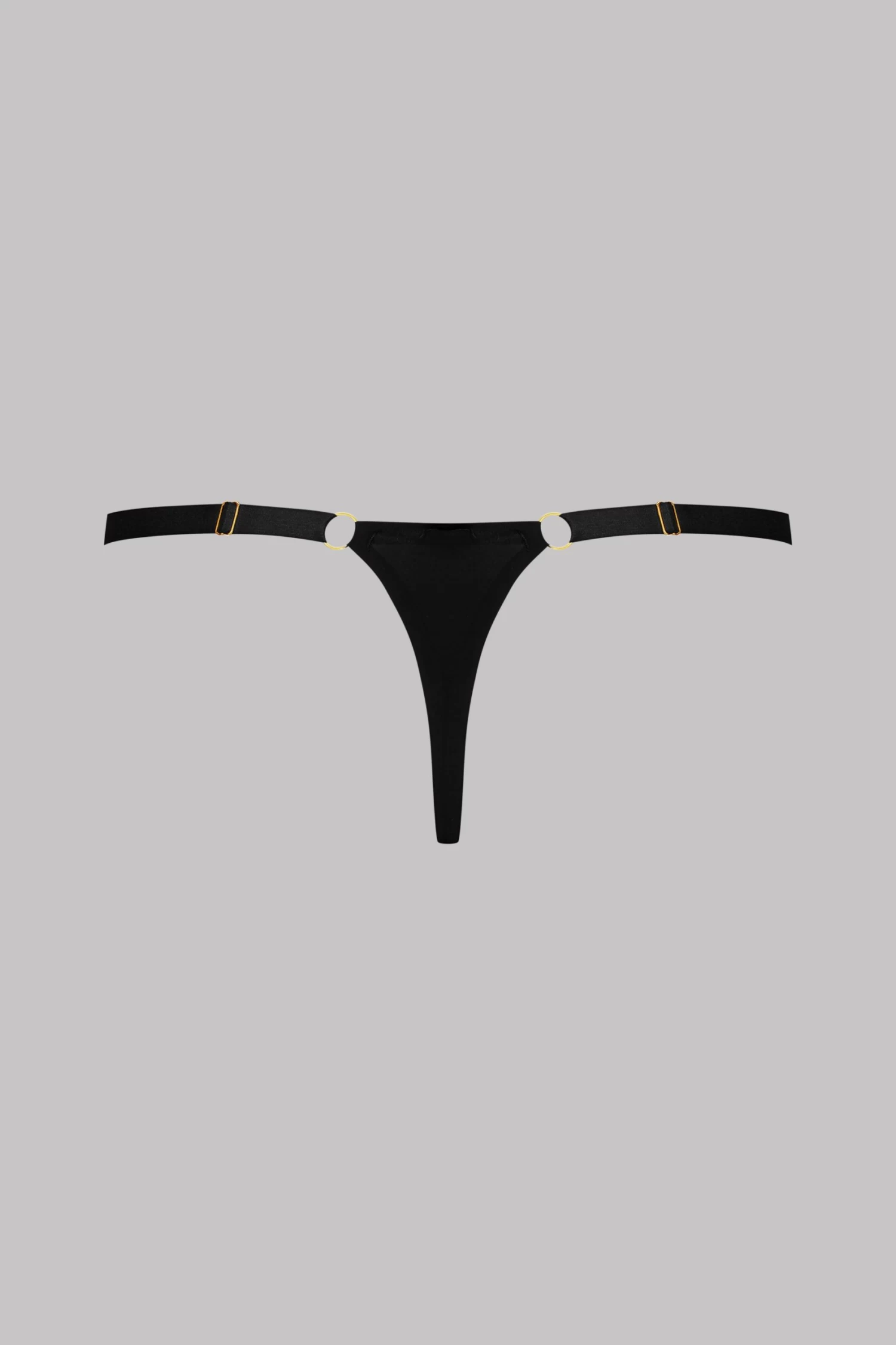 Mini string en microfibre opaque. Bandes élastiques réglables avec accroches amovibles au-devant et anneaux dorés au dos. Finitions thermocollées pour un effet lisse et sans couture.
