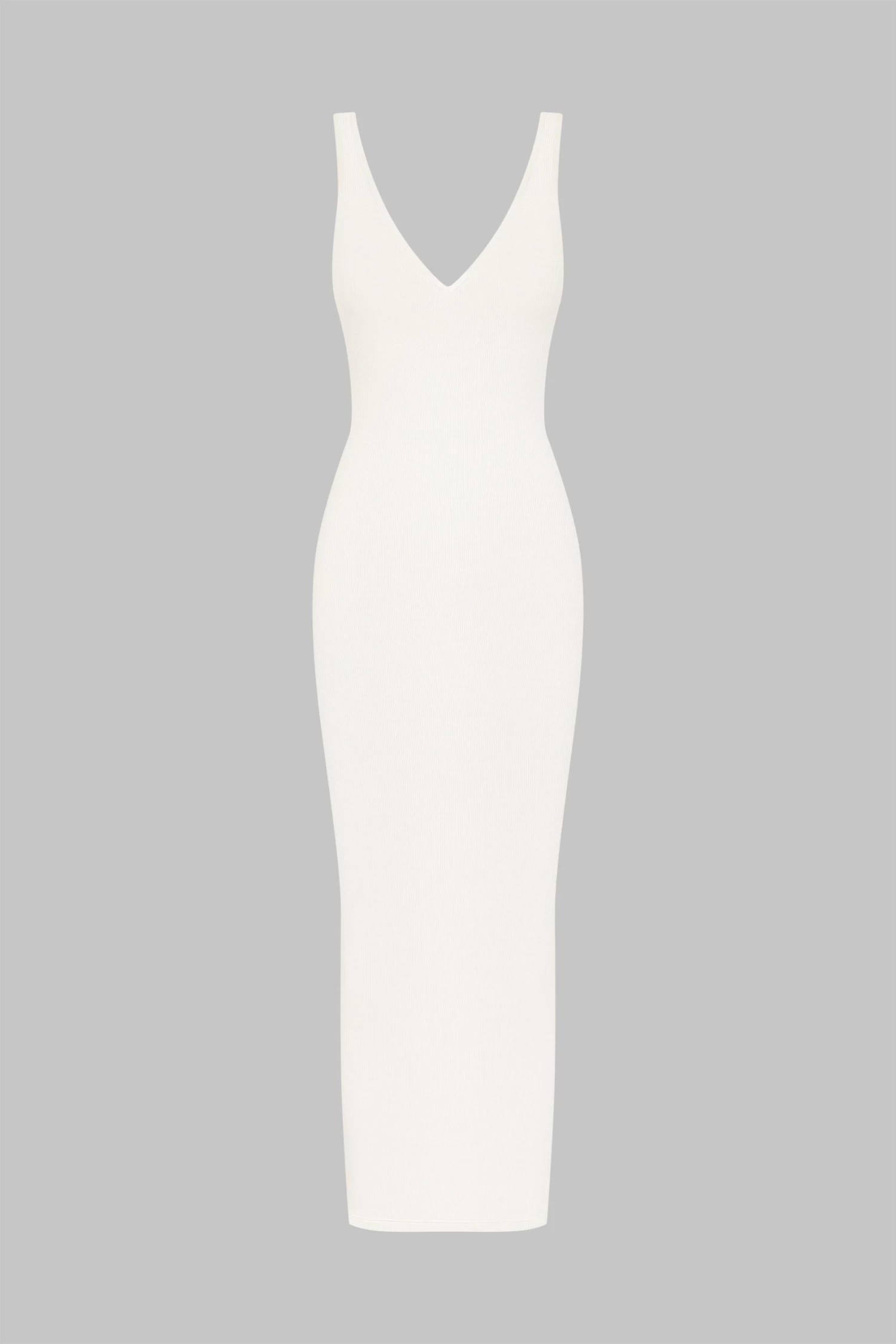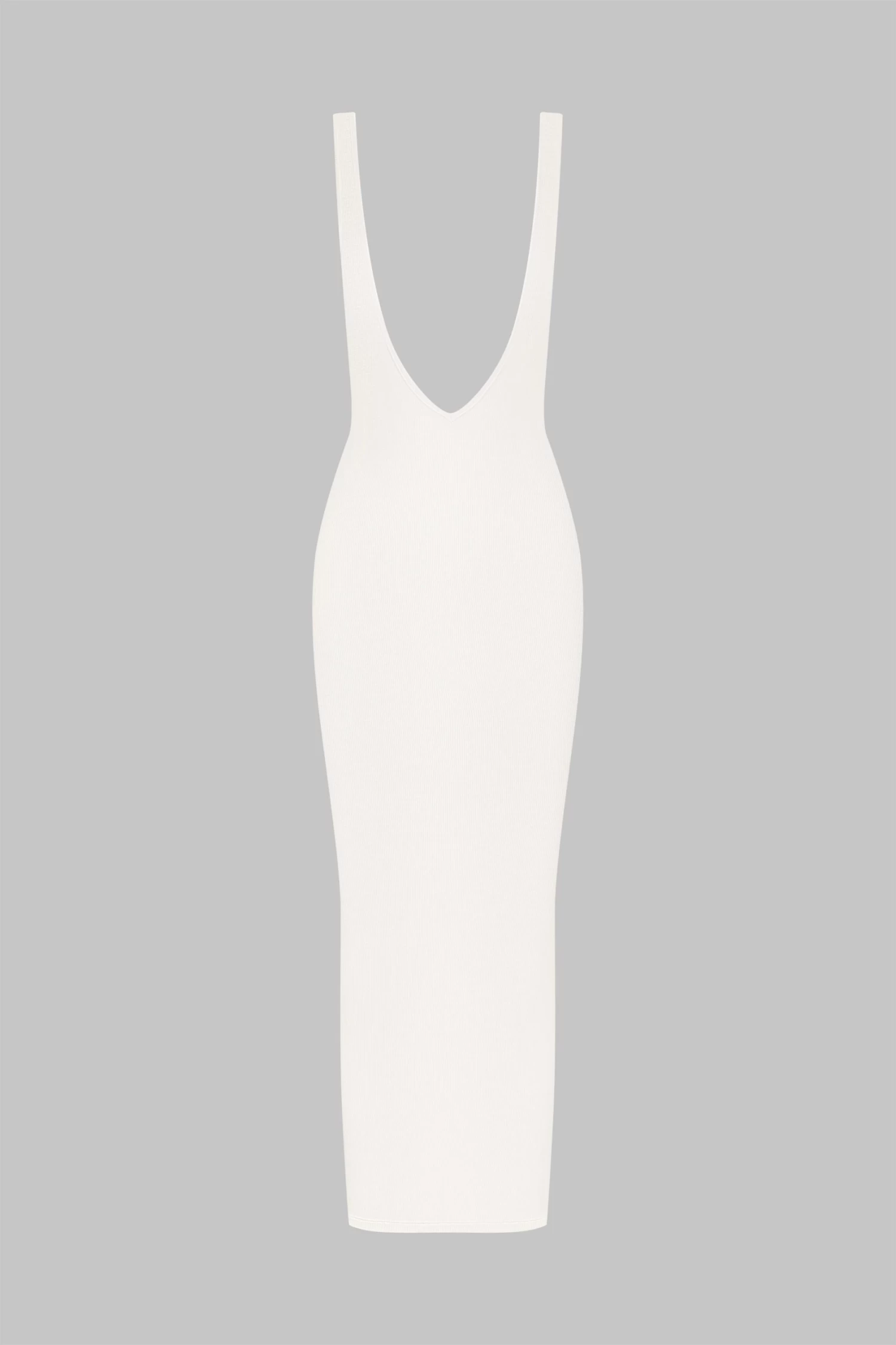 Robe longue dos nu V profond au toucher unique. Modal côtelé ultra extensible, douce et légère qui s’étire en brillance comme en transparence. Coupe moulante et épurée au décolleté plongeant et larges bretelles.