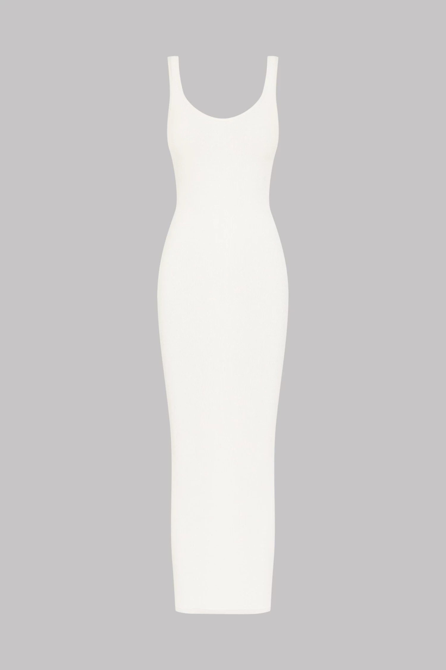 Robe longue à larges bretelles au toucher unique. Modal côtelé ultra extensible, doux et léger qui s’étire en brillance comme en transparence. Coupe moulante et épurée au décolleté arrondi.