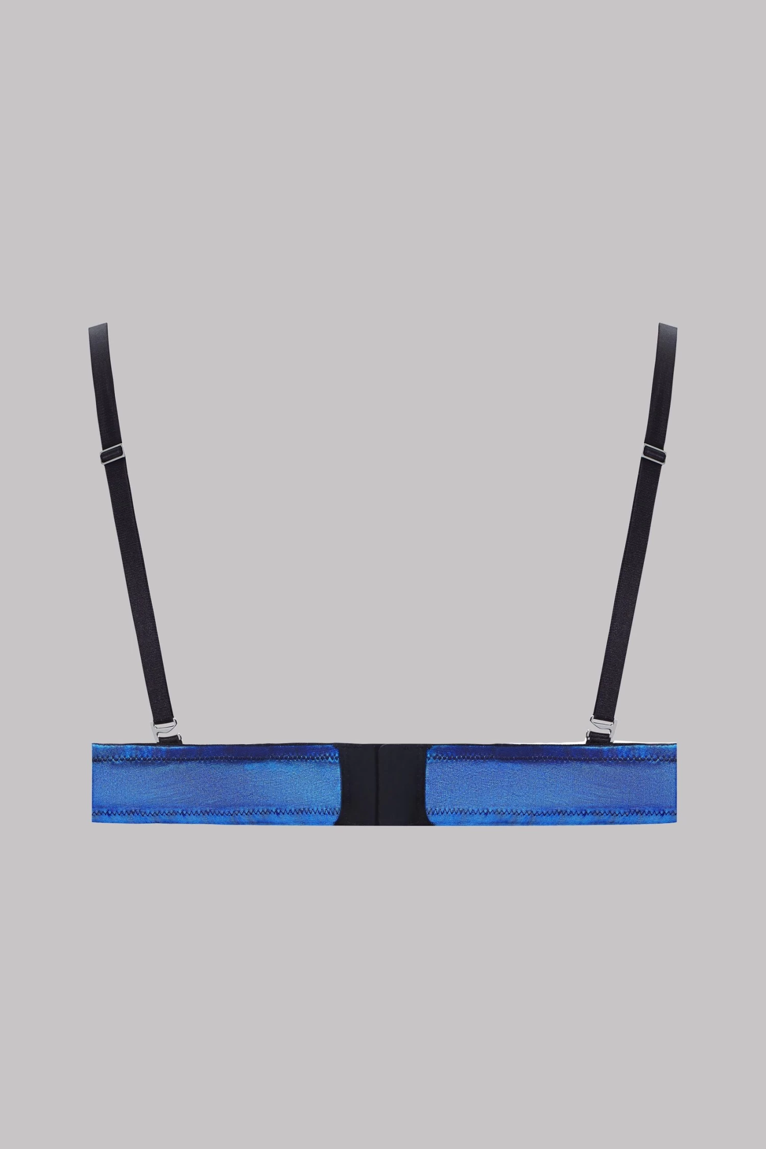 Soutien-gorge balconnet en tulle transparent avec application d’un foil métallisé.