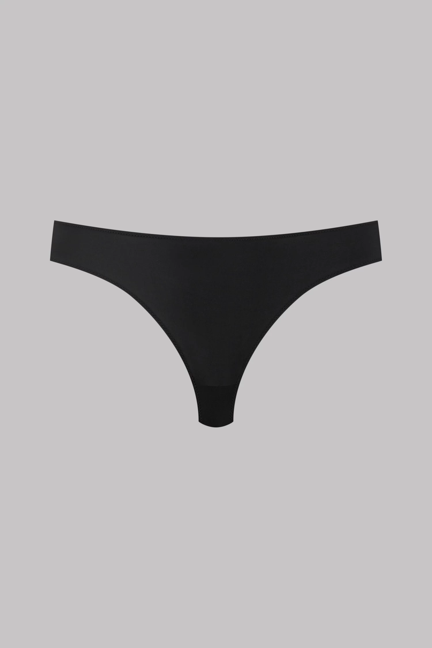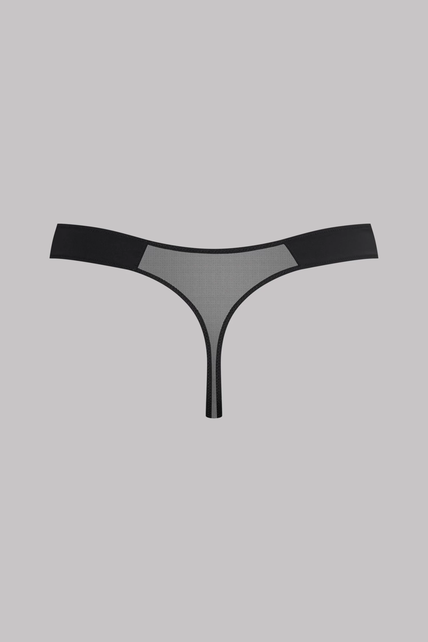 String en microfibre opaque avec empiècement en tulle transparent au dos. A porter droit à la taille ou légèrement échancré sur les côtés.